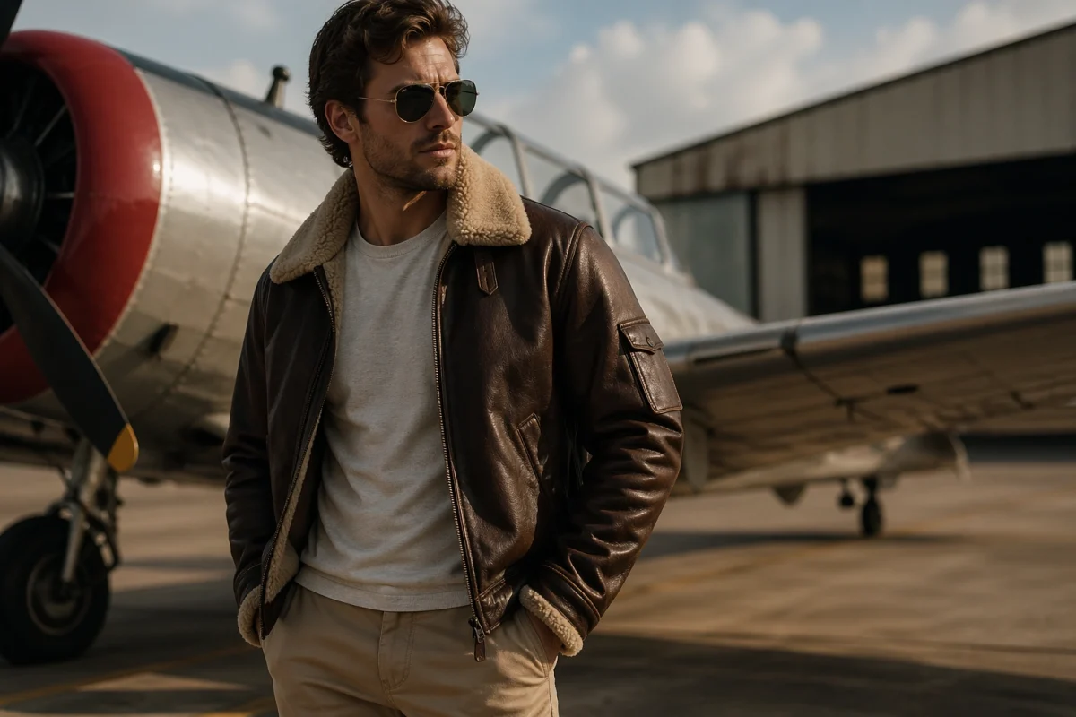 Plus votre tenue est lisible, plus le blouson gagne en style. Plus vos choix sont justes, plus il dégage d’allure. Et c’est précisément cela qui fait toute la différence entre quelqu’un qui “porte un blouson aviateur” et quelqu’un qui sait vraiment en faire une pièce de caractère. 🛩️